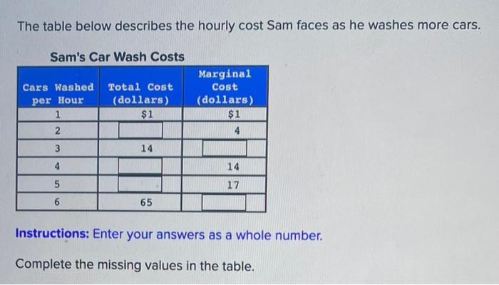 Solved The Table Below Describes The Hourly Cost Sam Faces Chegg Com